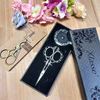 A gólyamintás olló különösen szépséges, de ha ajánlhatom a gazdagon díszített olló-mérőszalag szettet, a bolt egyik gyöngyszeme